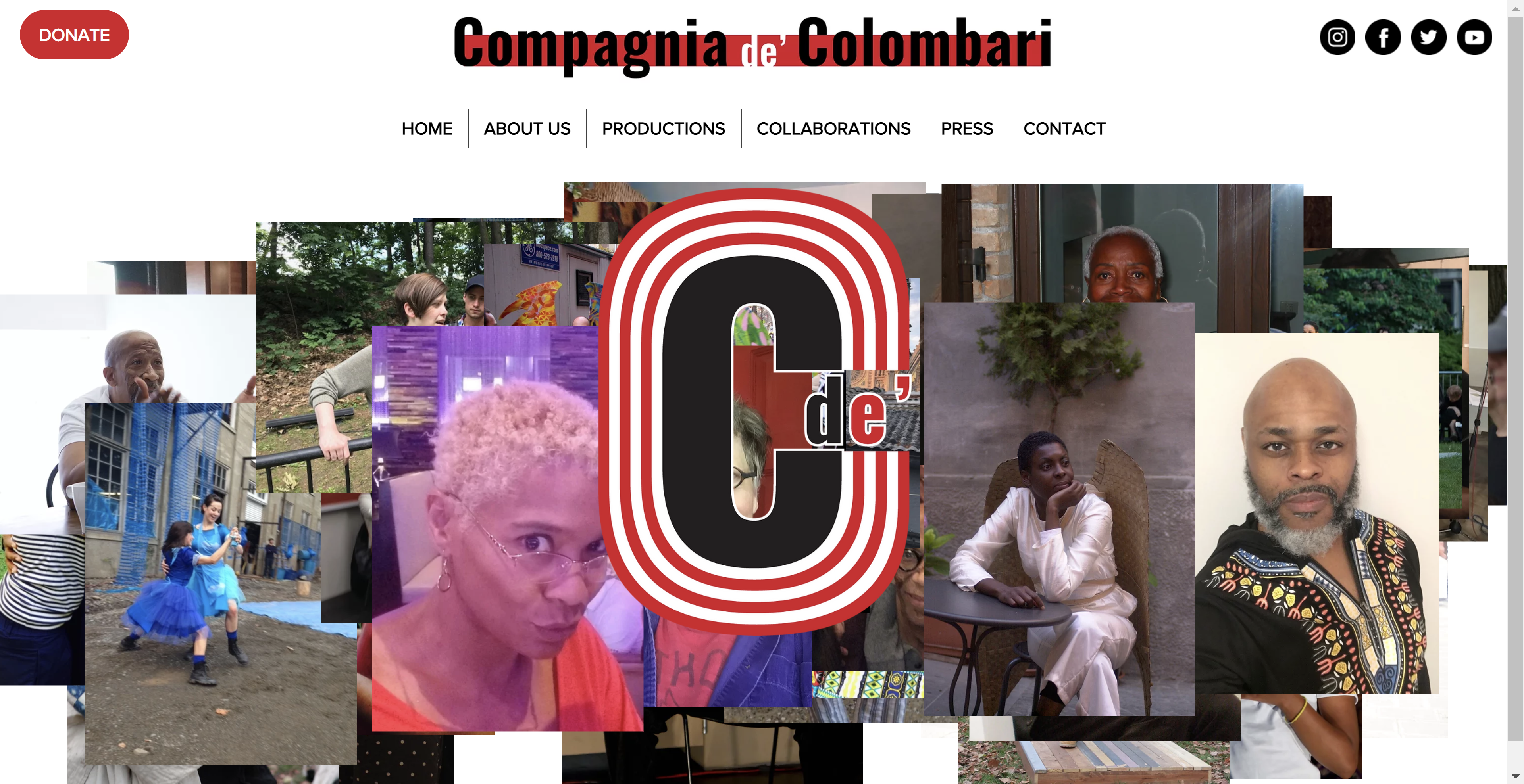 Of particular interest is the “ARTISTS” page, custom-coded to showcase countless candid photos of the group, its artists, and community members in a random layout each time the page is loaded and/or the animation loops. The homepage is also a bold and clear landing page for the site, using large tiles to direct visitors to the most important events and work to check out. The site was designed and built on Wix, the hosting platform Colombari’s original site was built on.